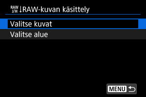 - Kun käytetään asetusta [Määritä käsittely→JPEG] tai [Määritä käsittely→HEIF], valitse [