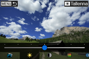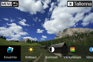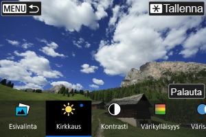 - Voit valita esimerkiksi [Kirkkaus]- tai [Kontrasti]-tehosteen painamalla