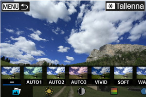 voit valita [VIVID], [SOFT] tai muita esimääritettyjä tehosteita. [AUTO1], [AUTO2] ja [AUTO3] ovat tehosteita, joita kamera suosittelee kuvaolosuhteiden perusteella.