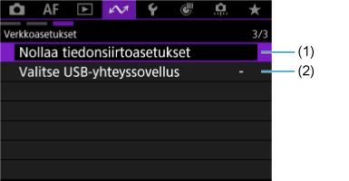 - Joitakin valikkokohtia ei voi määrittää, kun kamera on yhdistetty tietokoneisiin tai muihin laitteisiin liitäntäkaapelilla.