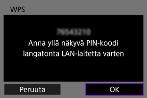 Tämä on yhteysmenetelmä, jota käytetään WPS-yhteensopivien tukiasemien kanssa. PIN-koodia käyttävässä yhteystilassa (PIN-tila) yhteys muodostetaan syöttämällä tukiasemaan kamerassa näkyvä 8-numeroinen tunnus.