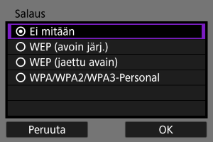 - Sama suojaus on määritettävä sekä toiseen laitteeseen että kameraan. Kohdassa Todennus- ja tietojen salaustavat on tietoja todennus- ja salaustyypeistä.