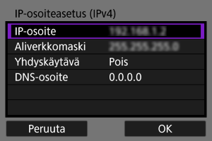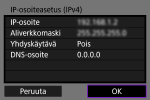 Määritä IP-osoiteasetus käsin. Huomaa, että näytetyt kohteet vaihtelevat tiedonsiirtotoiminnon mukaan.