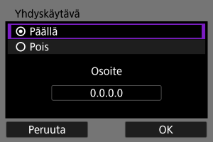 - Jos haluat käyttää yhdyskäytävää, valitse ensin [Päällä] ja sitten [Osoite].