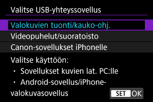 USB-yhteyssovelluksen valinta
