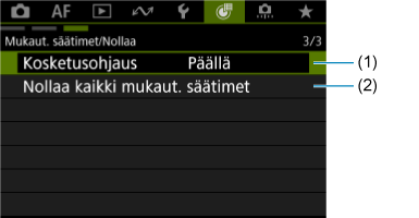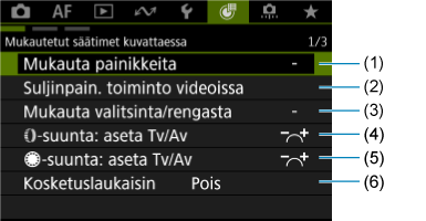 Välilehtien valikot: Ohjauksen mukauttamistoiminnot