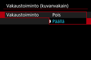 - Valitse [Päällä], jotta voit käyttää kuvanvakainta kamerassa.