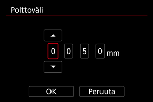- Polttovälin arvoksi voi valita 1–1000 mm (1 mm:n välein).