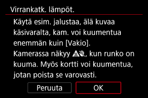 - Kameran rungon kuumennuttua näyttöön tulee varoitukseksi [