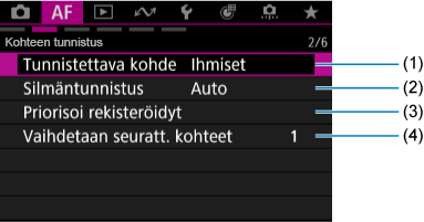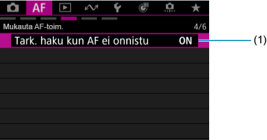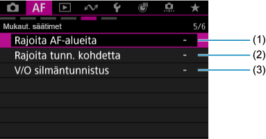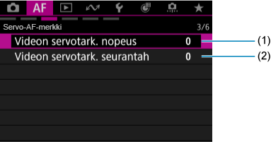 Välilehtien valikot: Automaattitarkennus (videokuvaus)