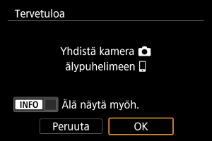 Yhdistämisohjeet älypuhelimeen tulevat näkyviin, jos valitset [OK], kun määritysnäyttö tulee näkyviin ().