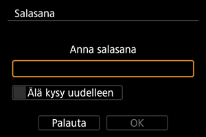Voit valita näissä tilanteissa salasananäytössä [Älä kysy uudelleen].