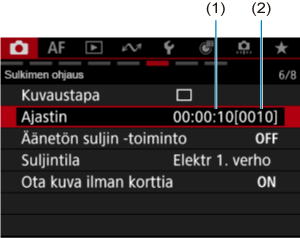 - Valitse asetettava vaihtoehto (tunnit : minuutit : sekunnit / otosmäärä).