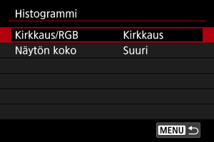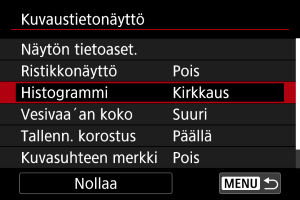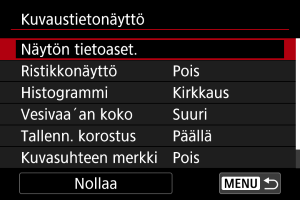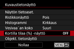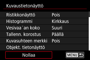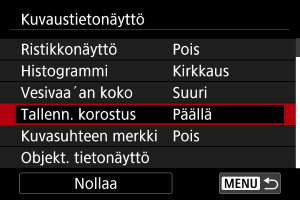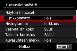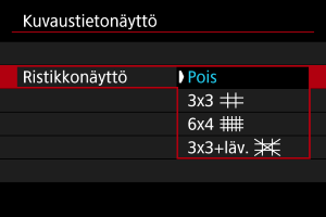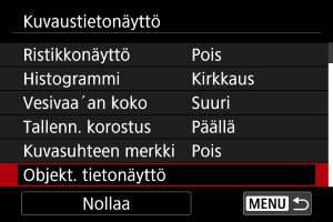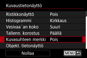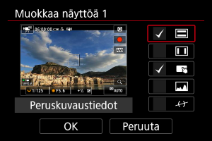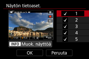 - Valitse kamerassa näytettävät tietonäytöt painikkeilla