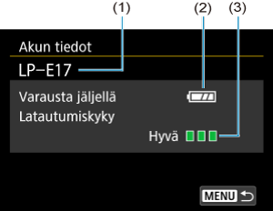 Voit tarkistaa käyttämäsi akun varauksen näytöstä.