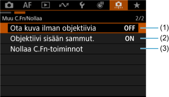 [: Nollaa C.Fn-toiminnot] ‑toiminnon valitseminen nollaa kaikki valinnaisten toimintojen asetukset.