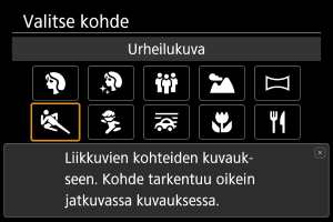Käytä [] (Urheilukuva), kun haluat kuvata liikkuvia kohteita, kuten juoksijoita tai liikkuvia kulkuneuvoja.