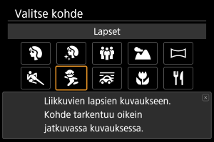 Käytä [] (Lapset) ‑tilaa, kun haluat kuvata aktiivisia lapsia, jotka liikkuvat ympäriinsä. Ihonsävyt näyttävät eloisilta.