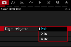 Kuvauksen suurennusta voi kasvattaa objektiivin suurennusta suuremmaksi kasvattamalla kuva-alueen keskiosaa.