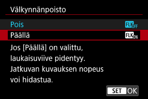 -painiketta, valitsemalla [Välkynnänpoisto] ja painamalla sitten