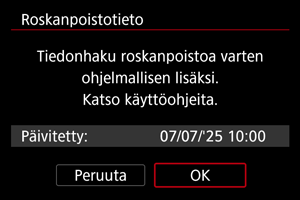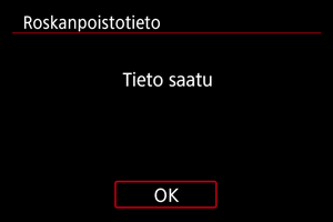 - Kun kuva on otettu, kamera alkaa hakea roskanpoistotietoa. Kun roskanpoistotiedot on haettu, näyttöön tulee viesti.
