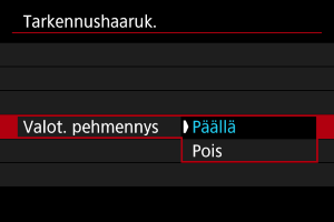 - Tarkennushaarukointi ei ole käytettävissä, kun kamera on määritetty manuaalitarkennukselle ().