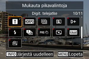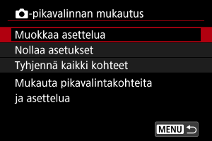 - Valitsemalla [Tyhjennä kaikki kohteet] voit poistaa kaikki kohteet asettelusta, jolloin Pikavalintanäyttöä ei näytetä, kun