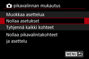 - Valitsemalla [Nollaa asetukset] voit palauttaa Pikavalintanäytön kohteet ja asettelun.