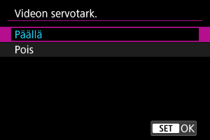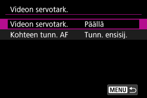 Voit määrittää, käytetäänkö videon servotarkennusta, jos kohdassa [: Tunnistettava kohde] () määritettyä kohdetta ei tunnisteta.
