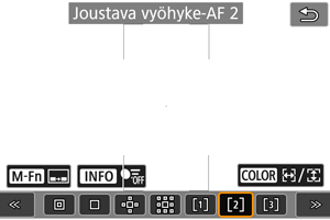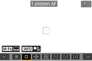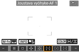 Tarkennuspisteen voi asettaa manuaalisesti. Kun Joustava vyöhyketarkennus 1 on valittu, näkyviin tulee tällaisia näyttöjä.
