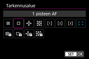Kamera tarkentaa käyttäen yhtä AF-pistettä [].