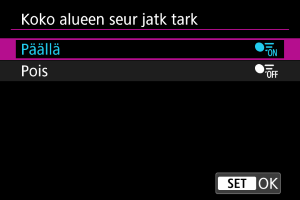 : Koko alueen seur jatk tark] [Päällä] tai [Pois] painamalla