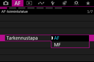 - AF-pisteiden tai AF-vyöhykekehysten määrittäminen manuaalisesti