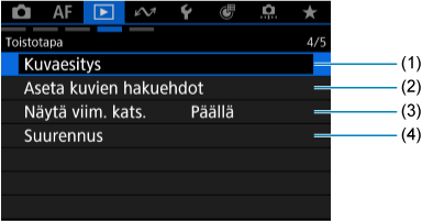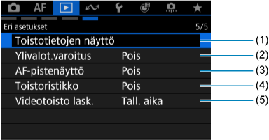 Välilehtien valikot: Toisto