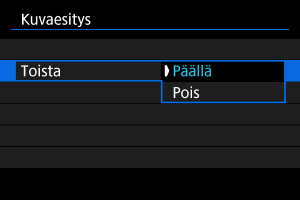 - Määritä stillkuvien asetukset [Kuvan näyttöaika] ja [Toista] (toisto uudelleen).