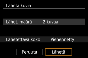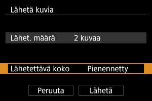 - Useita kuvia lähetettäessä voit myös muuttaa [Lähetettävä koko] ‑asetusta tarpeen mukaan vahvistusnäytössä ennen lähettämistä.