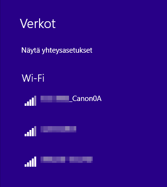 - Jos haluat muodostaa Wi-Fi-yhteyden uudelleen, katso kohta Yhdistäminen uudelleen Wi-Fi-/Bluetooth-yhteydellä.