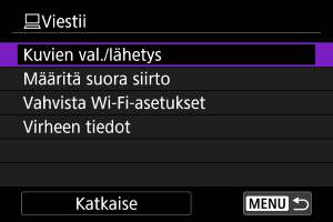 - Jotkin valikkokohdat eivät ole käytettävissä kuvien siirron aikana.