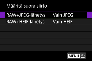 Voit määrittää siirrettävät RAW+JPEG- tai RAW+HEIF-kuvat.