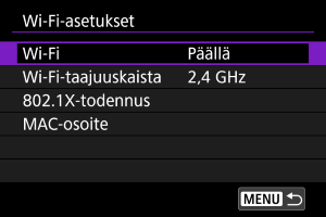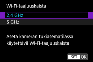 Valitse tarvittaessa kameran tukiasematilan taajuuskaista. Tämä taajuuskaista koskee myös Bluetooth-toiminnoilla muodostettuja Wi-Fi-yhteyksiä.