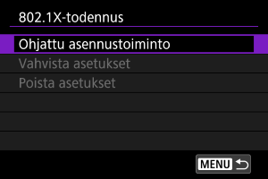 Valitsemalla [802.1X-todennus]-vaihtoehdon voit asettaa, tarkistaa tai poistaa 802.1X-todennusasetuksia ohjatun asennustoiminnon avulla.