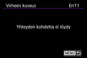 Kameran tiedonsiirtoon vaikuttavien virheiden tiedot saa näkyviin.