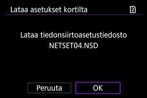 - Asetustiedostoja ei ehkä voi ladata, jos ne on tallennettu kameralla, jossa on eri laiteohjelmistoversio.