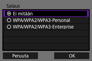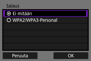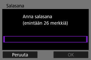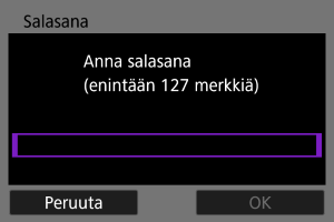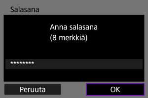 - Valitse toisen laitteen Wi-Fi-asetuksissa kameran näytössä näkyvä SSID (verkon nimi) ja kirjoita sitten salasana.