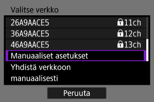 Valitse [Manuaaliset asetukset] [Valitse verkko] ‑näytössä.