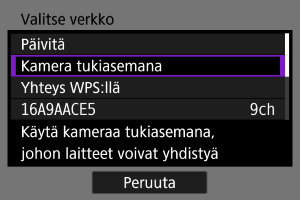 Valitse [Kamera tukiasemana] [Valitse verkko] ‑näytössä.
