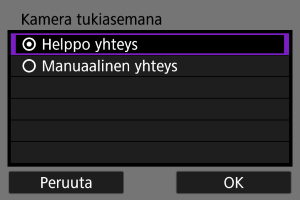 Kamera tukiasemana on yhteysmenetelmä, jonka avulla kamera ja muut laitteet voidaan yhdistää Wi-Fi-yhteydellä käyttämättä tukiasemaa. Kaksi yhteystapaa on käytettävissä seuraavasti.