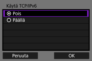 - Valitse [Päällä], jos haluat käyttää IPv6-protokollaa.
