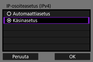 - Jos [IP-osoiteasetus (IPv4)]-näyttö näkyy, valitse IP-osoitteen määrittäminen.