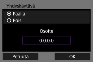 Jos haluat käyttää yhdyskäytävää, valitse ensin [Päällä] ja sitten [Osoite].